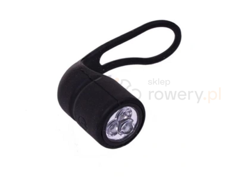 Wyposażona w 3 mocne diody LED o mocy 3 W, generuje intensywne białe światło, które zapewnia dobrą widoczność z daleka. Montaż lampki jest wyjątkowo prosty – elastyczna opaska silikonowa pozwala na szybkie założenie jej na kierownicę bez użycia narzędzi.