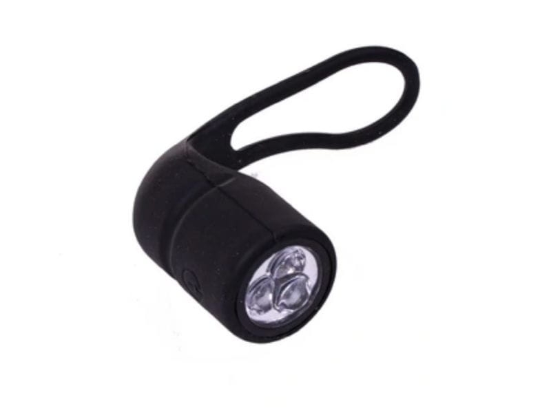Lampka Przednia 3 LED Silikon Czarna to praktyczne i niezawodne oświetlenie dla każdego rowerzysty, dbającego o bezpieczeństwo podczas jazdy po zmroku lub w słabszych warunkach widoczności. Dzięki kompaktowej konstrukcji oraz silikonowej obudowie, lampka jest lekka, trwała i odporna na działanie warunków atmosferycznych.