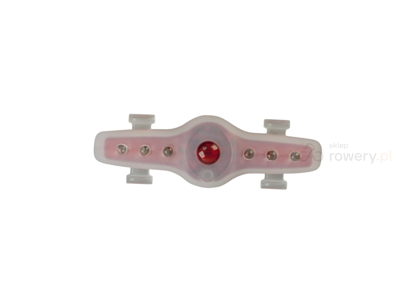 Dodatkowo odporny na warunki atmosferyczne korpus silikonowy rozciąga się, aby łatwo zamontować go do dowolnej rury na rowerze. Może być też użyty jako lampka na kask rowerowy.
