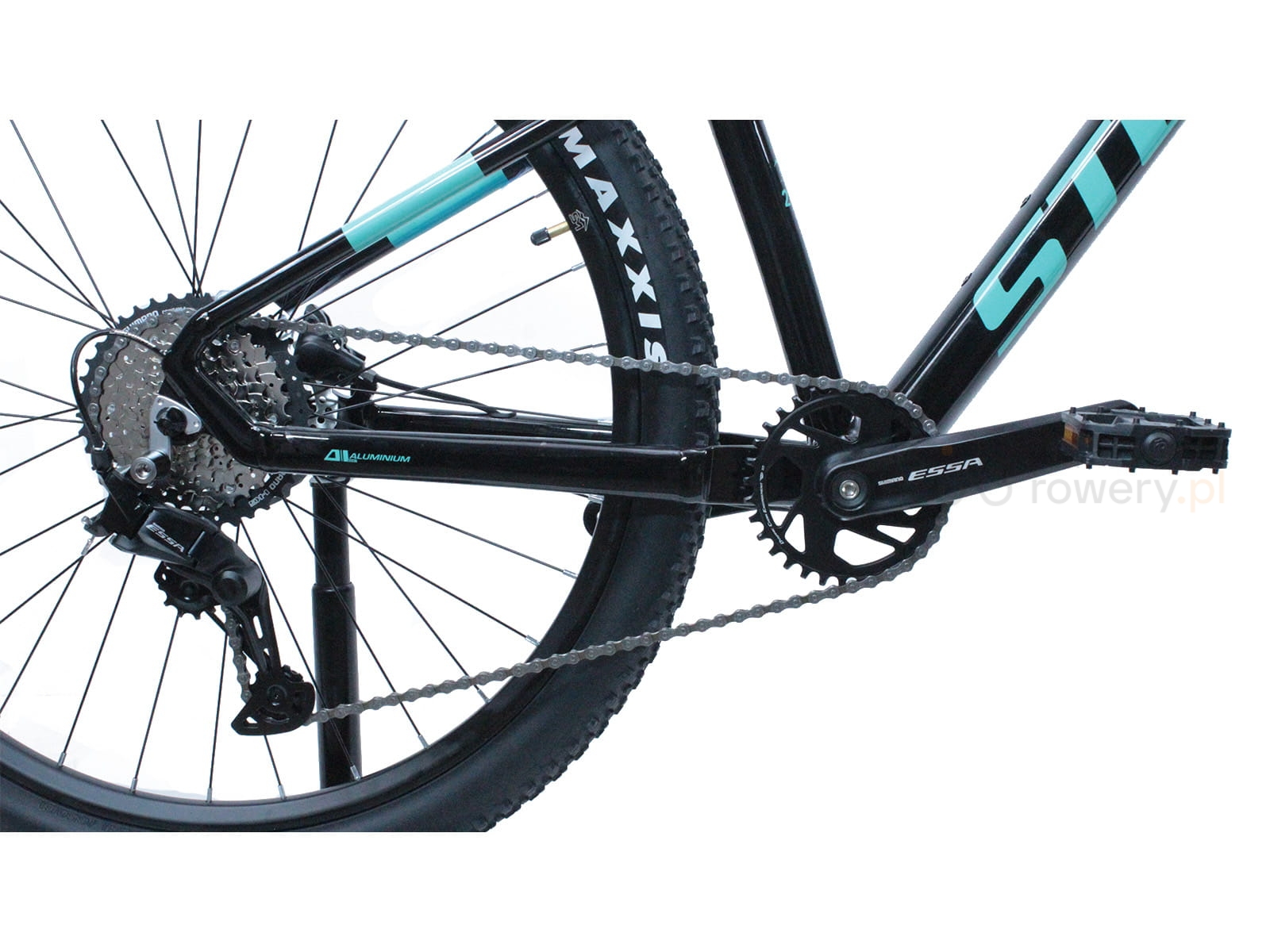 - Napęd Shimano Essa 1x8 – precyzyjna i płynna zmiana biegów zapewnia wygodę jazdy w każdym terenie.