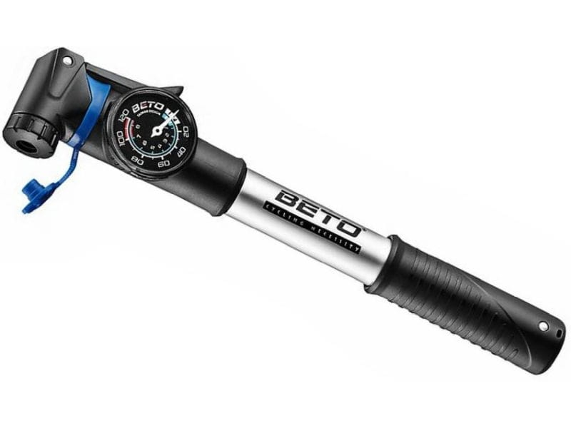 Pompka BETO MINI CRH-033AG to praktyczne narzędzie wykonane z aluminium, wyposażone w czytelny, okrągły manometr ułatwiający kontrolę ciśnienia podczas pompowania. Dwukierunkowy mechanizm działania (2-way) pozwala szybciej uzyskać wymagane ciśnienie w oponie. Zawór z możliwością przekładania obsługuje zarówno wentyle Schrader, jak i Presta, co zwiększa zakres zastosowań. Kompaktowa konstrukcja i dołączony uchwyt montażowy umożliwiają wygodne przewożenie na ramie roweru.