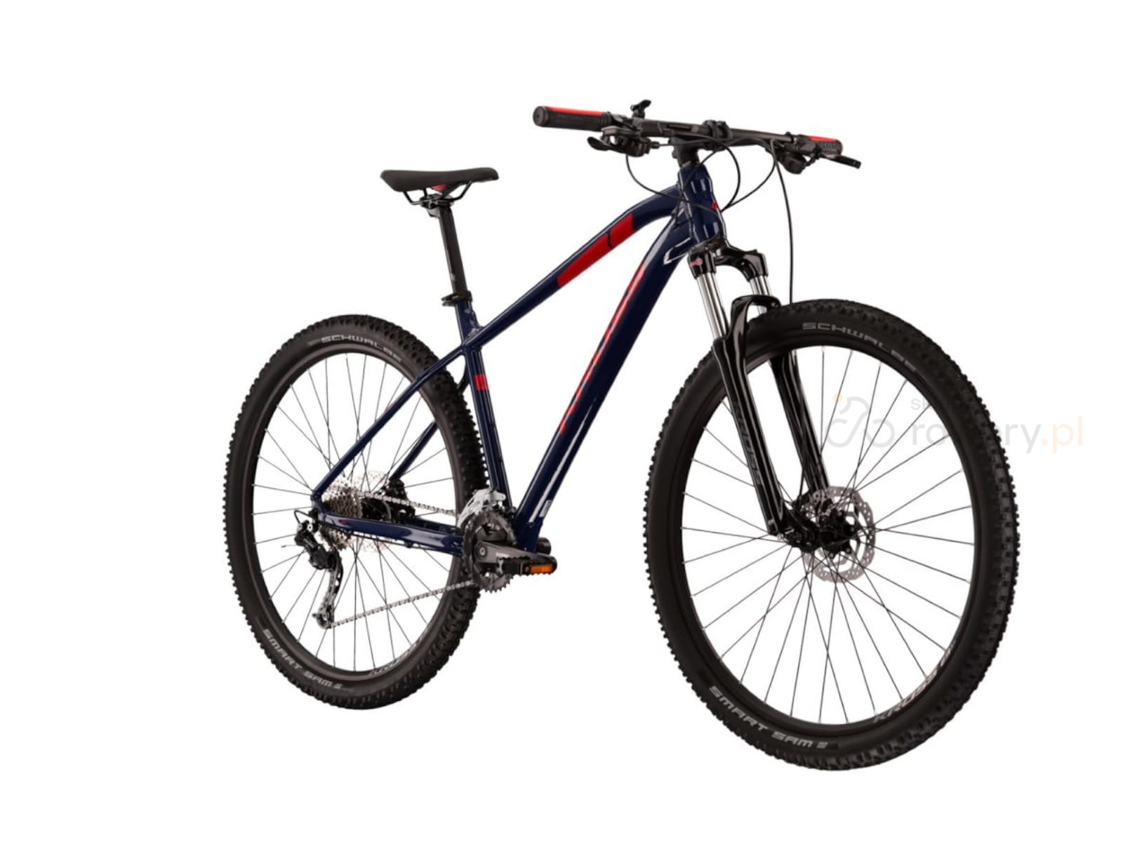 W rowerze zastosowano także wysokiej jakości opony Schwalbe Smart Sam o szerokości 2,1 cala. Pozwolą Ci one na efektywną i bezpieczną jazdę w każdych warunkach oraz terenie. Model wyposażony został także w sprawdzone elementy napędu od japońskich firm Shimano oraz Suntour.