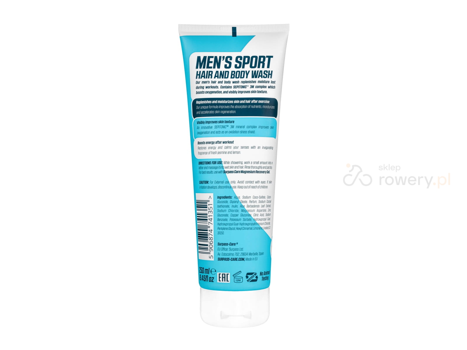 SURPASS Men's Sport Hair and Body Wash to zaawansowany żel pod prysznic stworzony z myślą o mężczyznach aktywnych fizycznie. Jego unikalna formuła 2w1 skutecznie oczyszcza ciało i włosy, jednocześnie wspomagając regenerację skóry po intensywnym wysiłku.
